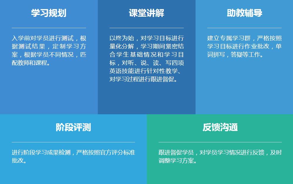 教学服务 坚持“以学生为中心”的服务原则,从学习规则,课堂讲解、助教辅导、阶段评测、反馈沟通5个维度,打造“测—学—练—评”服务链。